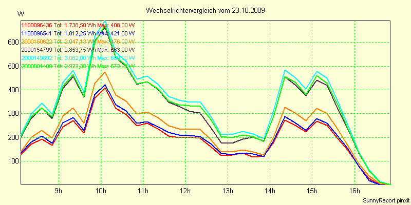 Wechselrichter-Vergleich Anlage 1 - Zedersdorf vom 23.10.2009