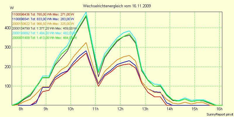 Wechselrichter-Vergleich Anlage 1 - Zedersdorf vom 16.11.2009