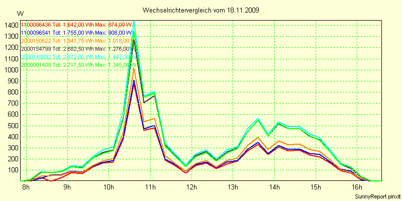 Wechselrichter-Vergleich Anlage 1 - Zedersdorf vom 18.11.2009