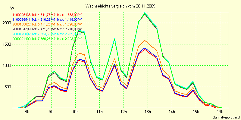 Wechselrichter-Vergleich Anlage 1 - Zedersdorf vom 20.11.2009