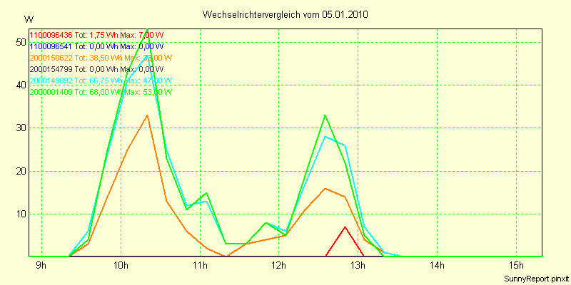 Wechselrichter-Vergleich Anlage 1 - Zedersdorf vom 05.01.2010