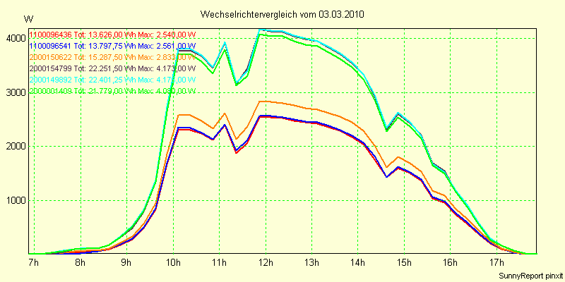 Wechselrichter-Vergleich Anlage 1 - Zedersdorf vom 03.03.2010