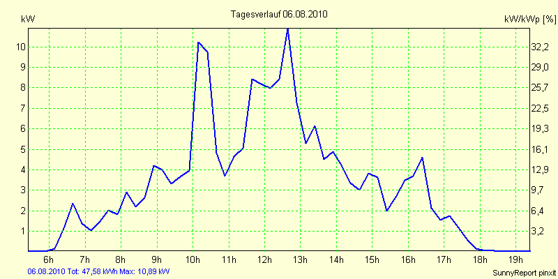 Wechselrichter-Vergleich Anlage 1 - Zedersdorf vom 06.08.2010