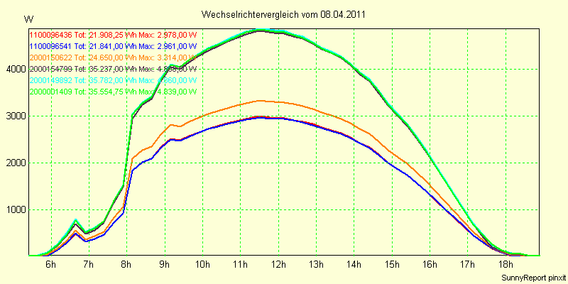 Wechselrichter-Vergleich Anlage 1 - Zedersdorf vom 08.04.2011
