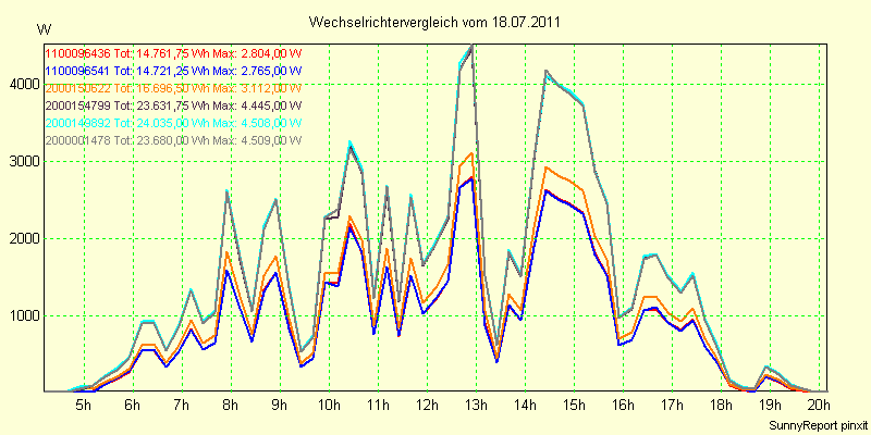 Wechselrichter-Vergleich Anlage 1 - Zedersdorf vom 18.07.2011