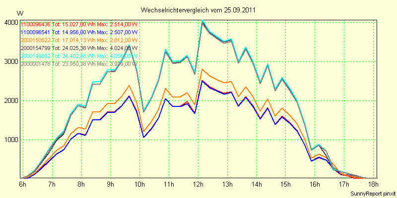 Wechselrichter-Vergleich Anlage 1 - Zedersdorf vom 25.09.2011