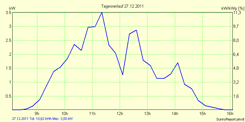 Wechselrichter-Vergleich Anlage 1 - Zedersdorf vom 27.12.2011