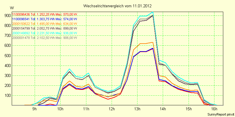 Wechselrichter-Vergleich Anlage 1 - Zedersdorf vom 11.01.2012