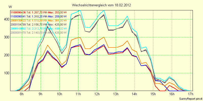 Wechselrichter-Vergleich Anlage 1 - Zedersdorf vom 18.02.2012
