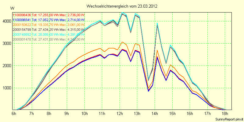 Wechselrichter-Vergleich Anlage 1 - Zedersdorf vom 23.03.2012