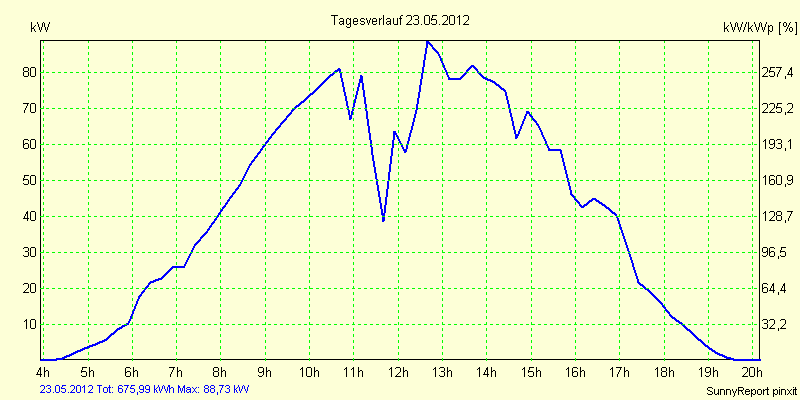 Wechselrichter-Vergleich Anlage 1 - Zedersdorf vom 23.05.2012