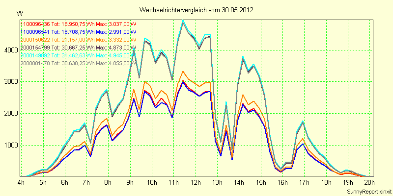 Wechselrichter-Vergleich Anlage 1 - Zedersdorf vom 30.05.2012
