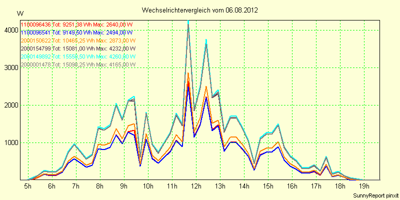 Wechselrichter-Vergleich Anlage 1 - Zedersdorf vom 06.08.2012