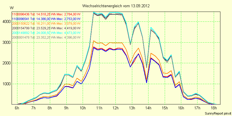 Wechselrichter-Vergleich Anlage 1 - Zedersdorf vom 13.09.2012