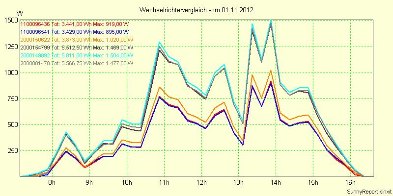 Wechselrichter-Vergleich Anlage 1 - Zedersdorf vom 01.11.2012