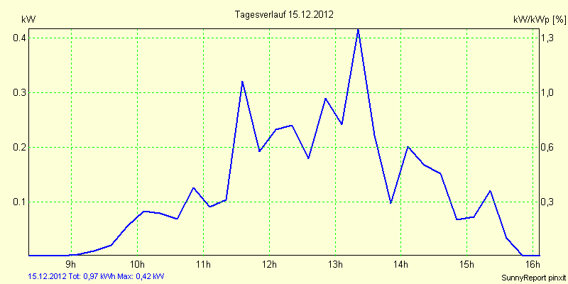 Wechselrichter-Vergleich Anlage 1 - Zedersdorf vom 15.12.2012
