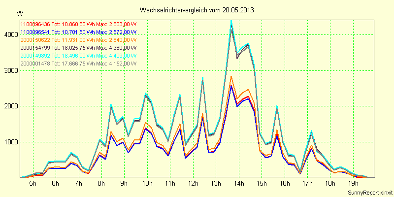 Wechselrichter-Vergleich Anlage 1 - Zedersdorf vom 20.05.2013