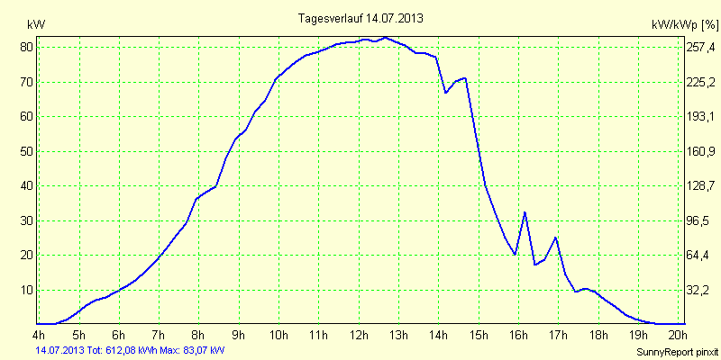 Wechselrichter-Vergleich Anlage 1 - Zedersdorf vom 14.07.2013