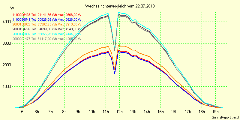 Wechselrichter-Vergleich Anlage 1 - Zedersdorf vom 22.07.2013