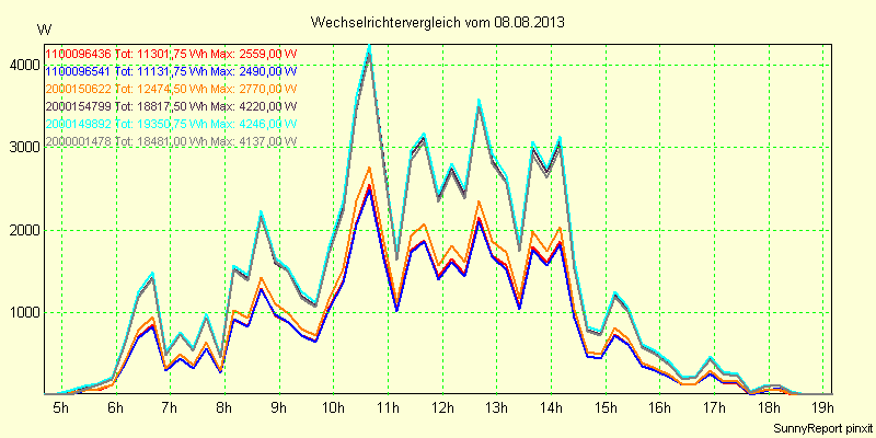 Wechselrichter-Vergleich Anlage 1 - Zedersdorf vom 08.08.2013