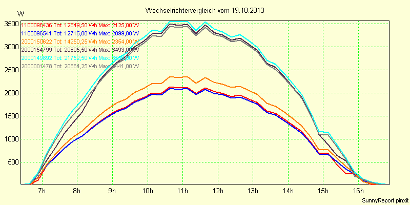 Wechselrichter-Vergleich Anlage 1 - Zedersdorf vom 19.10.2013