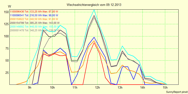 Wechselrichter-Vergleich Anlage 1 - Zedersdorf vom 09.12.2013