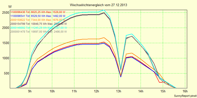 Wechselrichter-Vergleich Anlage 1 - Zedersdorf vom 27.12.2013