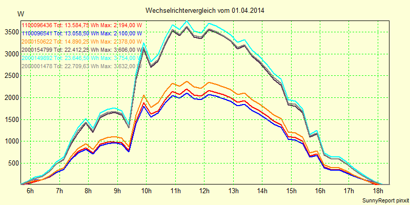 Wechselrichter-Vergleich Anlage 1 - Zedersdorf vom 01.04.2014