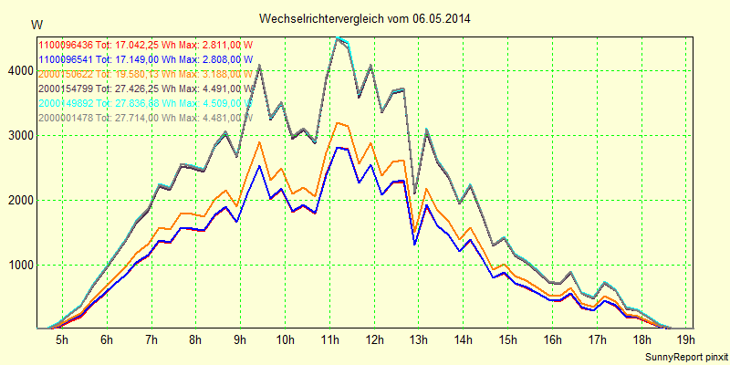 Wechselrichter-Vergleich Anlage 1 - Zedersdorf vom 06.05.2014