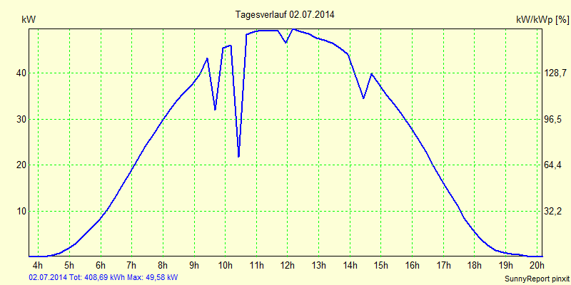 Wechselrichter-Vergleich Anlage 1 - Zedersdorf vom 02.07.2014