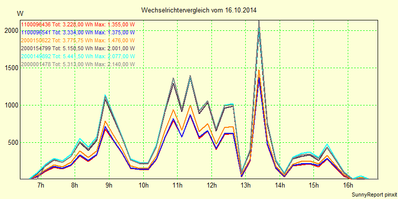 Wechselrichter-Vergleich Anlage 1 - Zedersdorf vom 16.10.2014