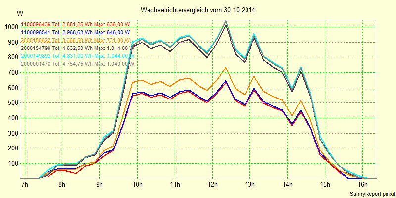 Wechselrichter-Vergleich Anlage 1 - Zedersdorf vom 30.10.2014