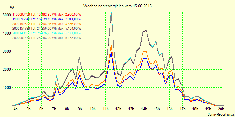 Wechselrichter-Vergleich Anlage 1 - Zedersdorf vom 15.06.2015