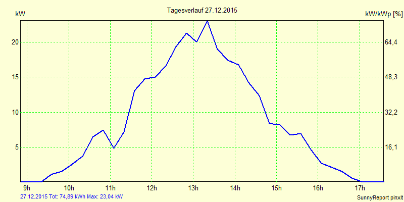 Wechselrichter-Vergleich Anlage 1 - Zedersdorf vom 27.12.2015