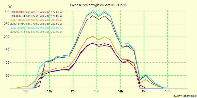 Wechselrichter-Vergleich Anlage 1 - Zedersdorf vom 01.01.2016