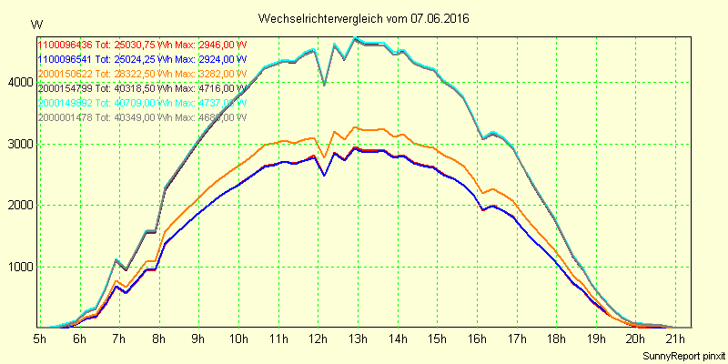 Wechselrichter-Vergleich Anlage 1 - Zedersdorf vom 07.06.2016