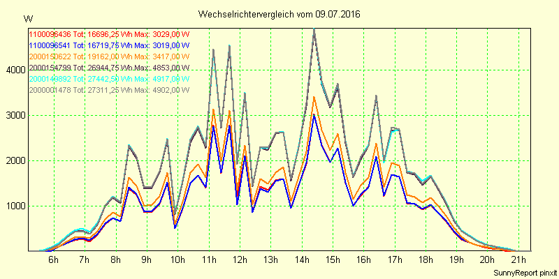 Wechselrichter-Vergleich Anlage 1 - Zedersdorf vom 09.07.2016