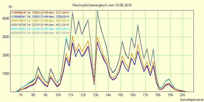 Wechselrichter-Vergleich Anlage 1 - Zedersdorf vom 10.08.2016