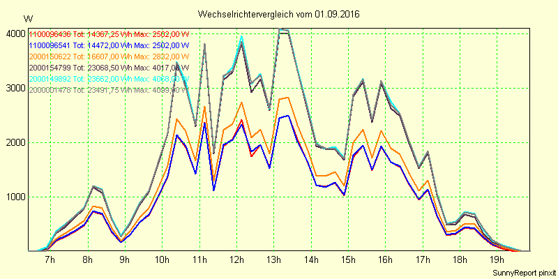 Wechselrichter-Vergleich Anlage 1 - Zedersdorf vom 01.09.2016