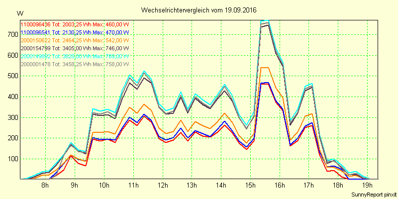 Wechselrichter-Vergleich Anlage 1 - Zedersdorf vom 19.09.2016
