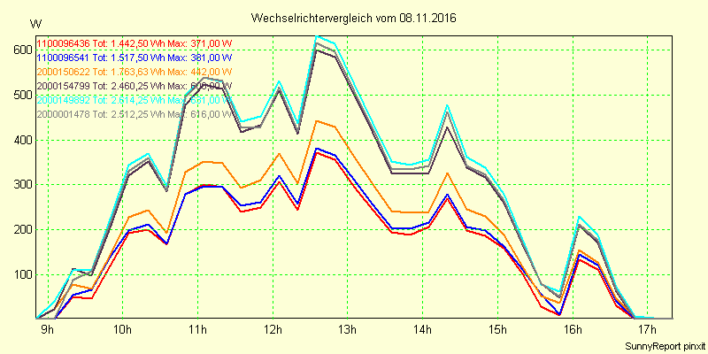 Wechselrichter-Vergleich Anlage 1 - Zedersdorf vom 08.11.2016