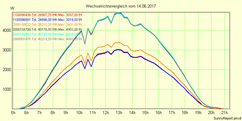 Wechselrichter-Vergleich Anlage 1 - Zedersdorf vom 14.06.2017