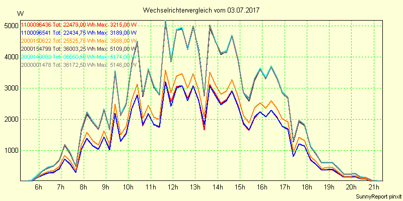 Wechselrichter-Vergleich Anlage 1 - Zedersdorf vom 03.07.2017