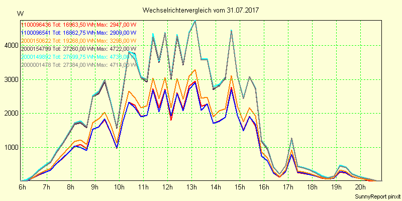 Wechselrichter-Vergleich Anlage 1 - Zedersdorf vom 31.07.2017