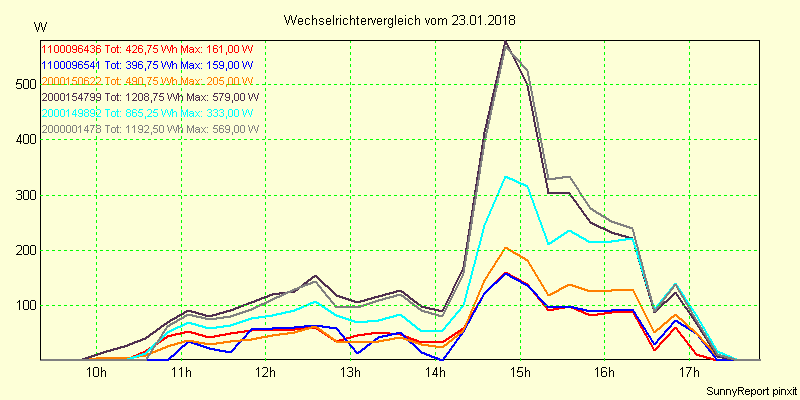 Wechselrichter-Vergleich Anlage 1 - Zedersdorf vom 23.01.2018
