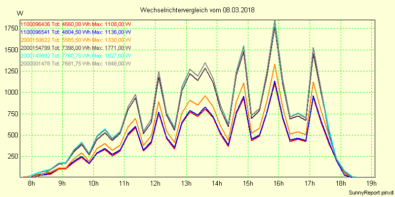 Wechselrichter-Vergleich Anlage 1 - Zedersdorf vom 08.03.2018