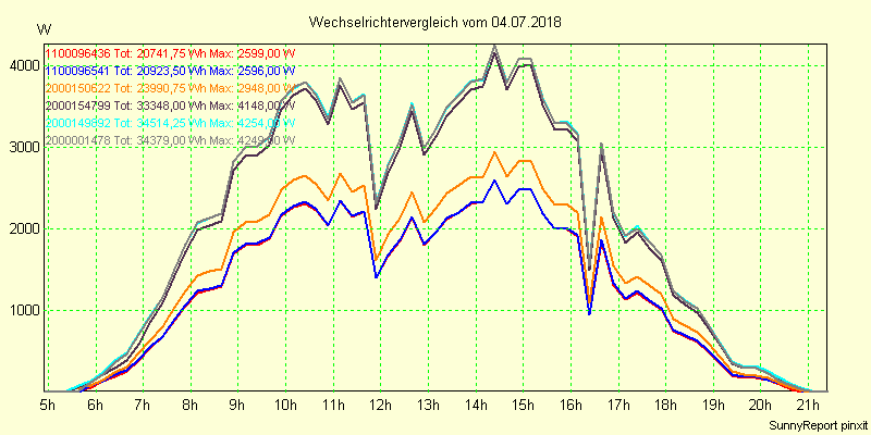 Wechselrichter-Vergleich Anlage 1 - Zedersdorf vom 04.07.2018