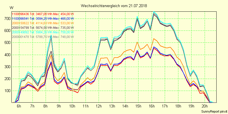 Wechselrichter-Vergleich Anlage 1 - Zedersdorf vom 21.07.2018
