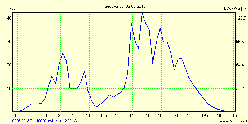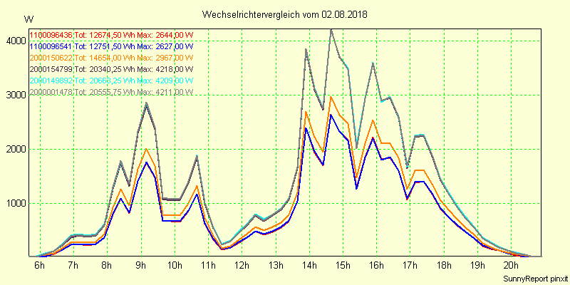 Wechselrichter-Vergleich Anlage 1 - Zedersdorf vom 02.08.2018
