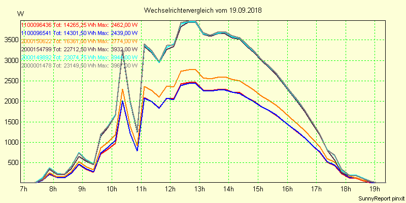Wechselrichter-Vergleich Anlage 1 - Zedersdorf vom 19.09.2018